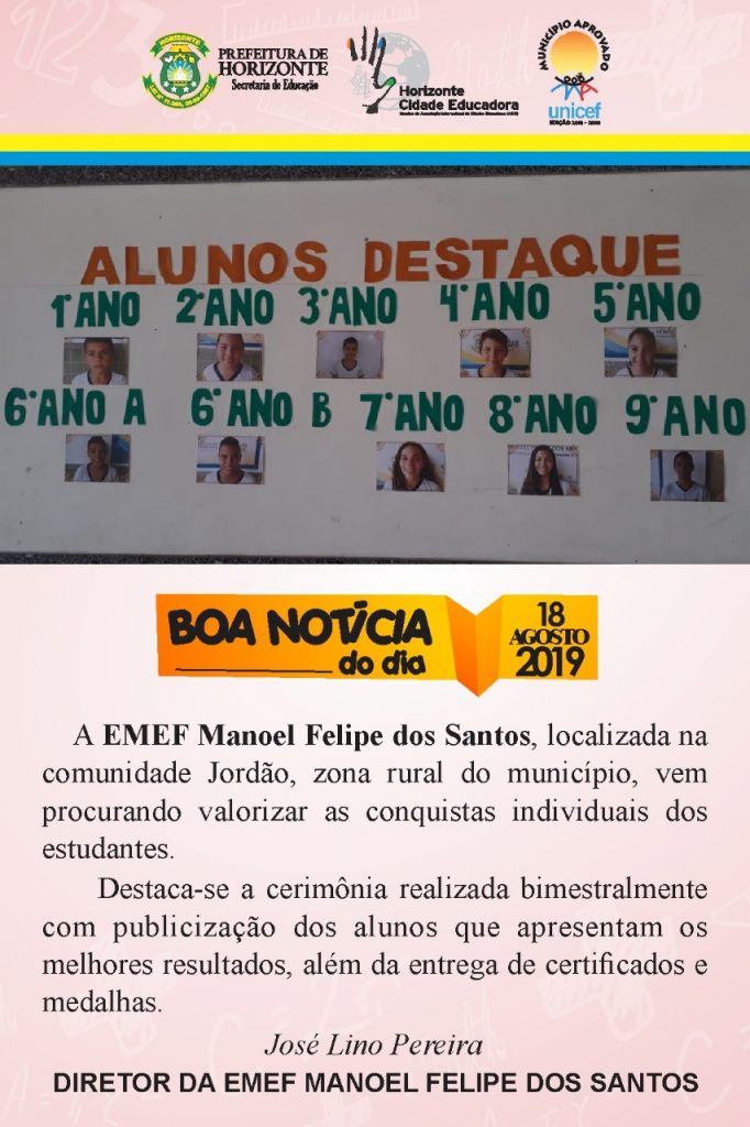 EMEF Manoel Felipe dos Santos destaca os seus melhores alunos