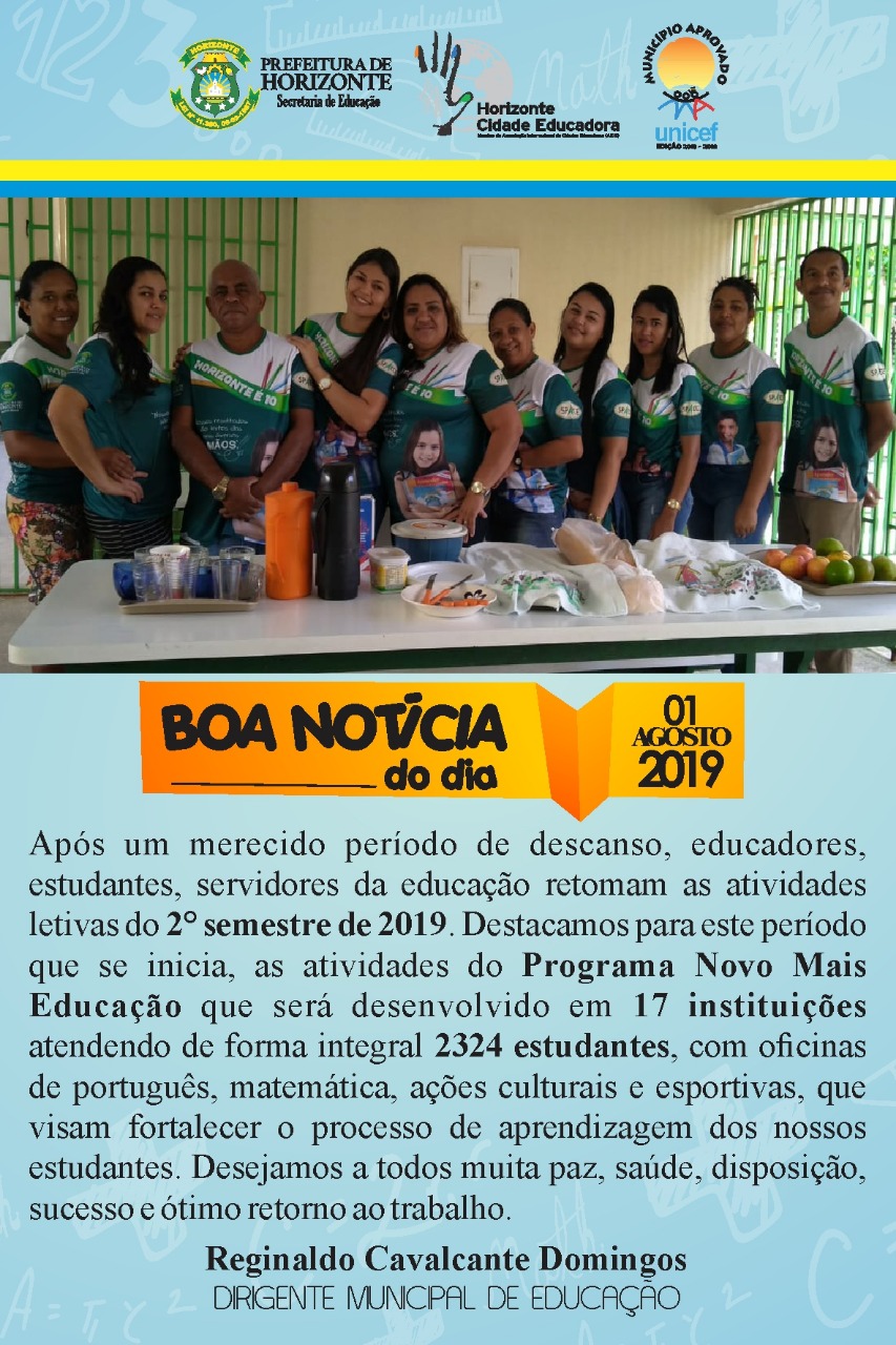 Volta às aulas dos alunos e retomada do programa Novo Mais Educação