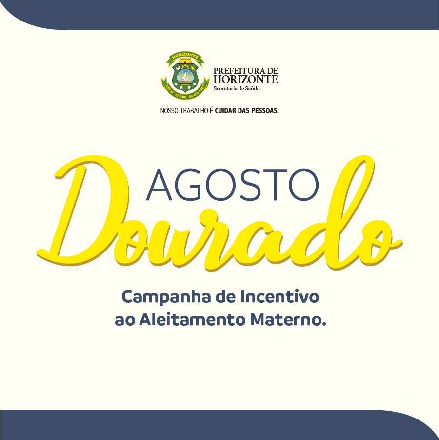 Prefeitura de Horizonte, por meio do Comitê de Aleitamento Materno, realiza a abertura oficial das ações alusivas ao Agosto Dourado nesta quinta-feira (1º), às 8h, no Centro Cultural Tasso Jereissati. Lançado em 2017, o Agosto Dourado foi criado pela Sociedade Brasileira de Pediatria (SBP) com a proposta que o mês de agosto fosse dedicado a incentivar e estimular a amamentação. O evento de abertura do Agosto Dourado em Horizonte contará com apresentação artística, relato de experiência com mães, explicações sobre o papel da doula no processo da amamentação e palestra da Dra. Renata Borges, Enfermeira Obstétrica e Mestre em Saúde Coletiva pela UECE. O tema da palestra será "Empoderar mães e pais – Favorecer a amamentação hoje e para o futuro". O evento é gratuito e aberto ao público. O Centro Cultural Tasso Jereissati fica localizado na Rua Baturité, 776 – Centro, Horizonte.