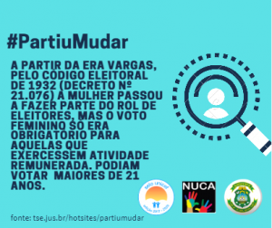Atividades desenvolvidas: produção de material de divulgação pelos jovens para a página Nuca Horizonte no facebook; reunião da Comissão do NUCA com o Cartório Eleitoral; rodas de conversa; audiência pública sobre a participação da mulher (a ser realizada em agosto).
