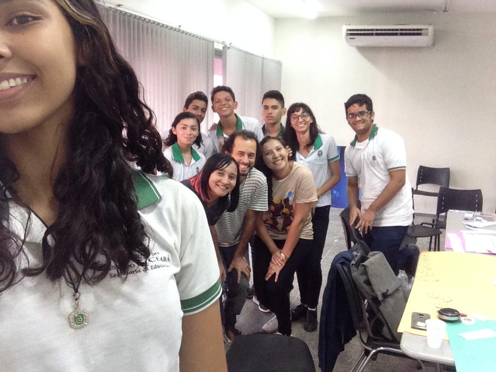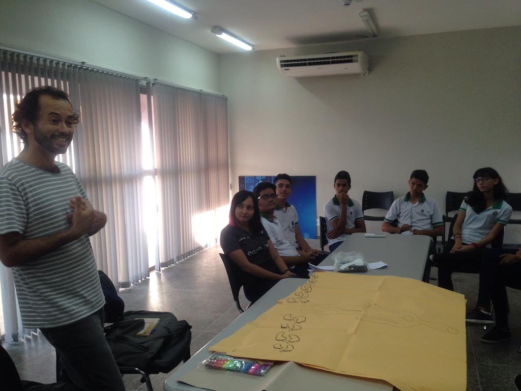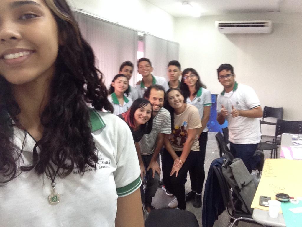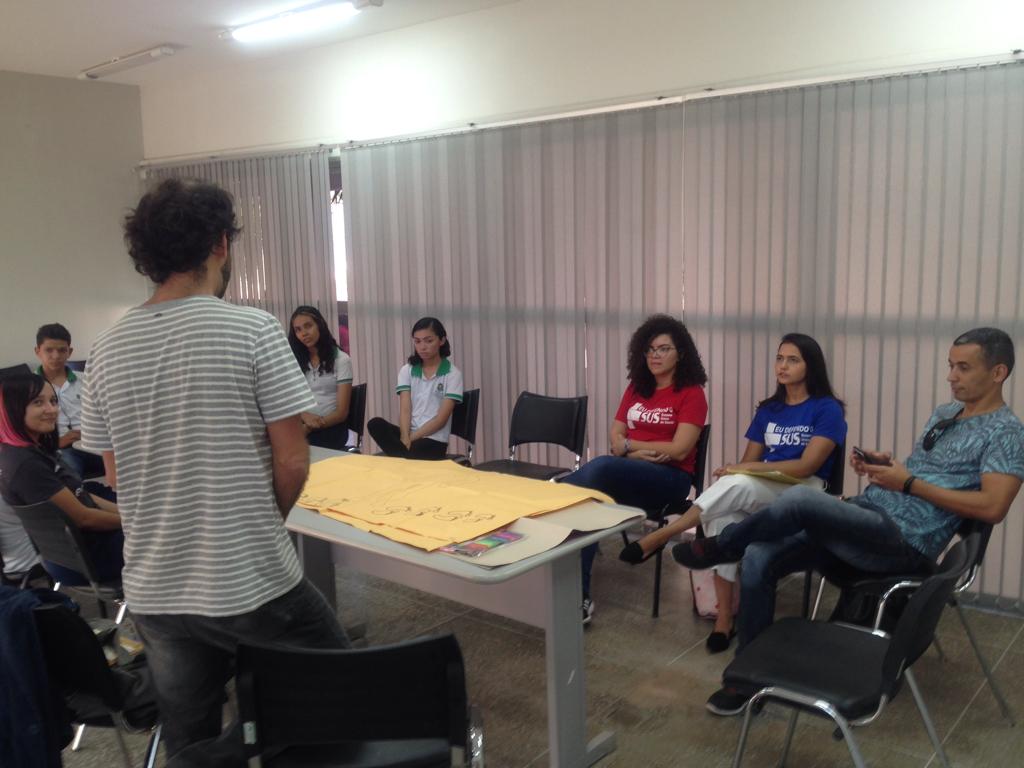 Em Horizonte o projeto já existe desde 2018. No dia 06/06/2019 (fotos abaixo) recebemos a visita do consultor da COMEA/Futura, empresa responsável pela avaliação do Projeto Maleta Juventudes, ligada ao Canal Futura, responsável pela entrevista e pela mediação de um grupo focal. No encontro foram feitas avaliações, discussões e troca de experiências entre os participantes das oficinas de 2018 e profissionais da saúde (Residentes da Escola de Saúde Pública do Estado do Ceará), coordenação do Centro de Artes e Esportes Unificados – CEU e o Instituto de Arte e Cultura de Horizonte – IACH.
