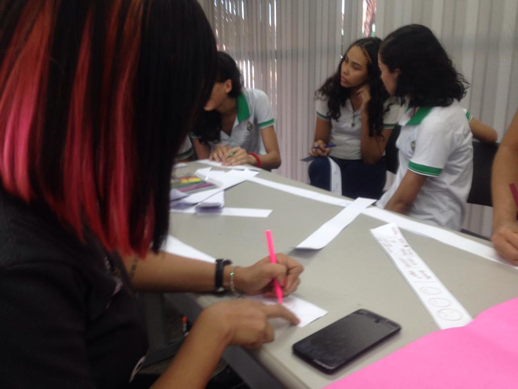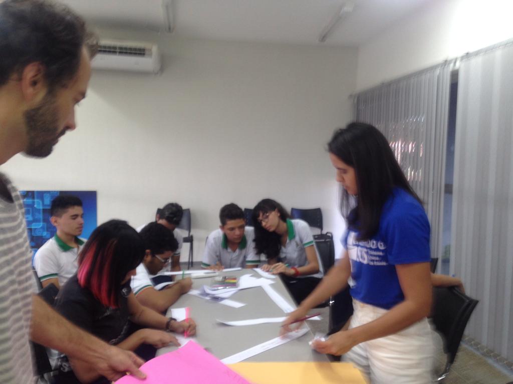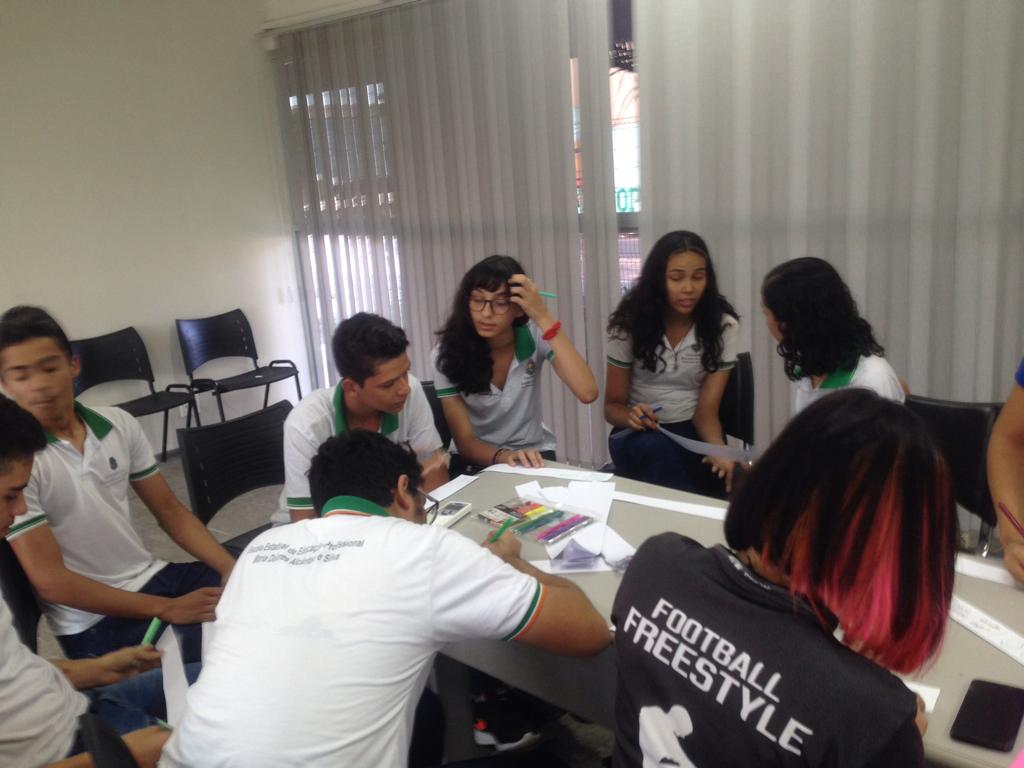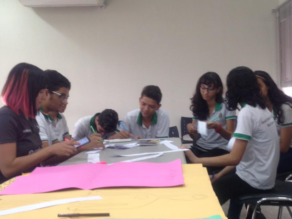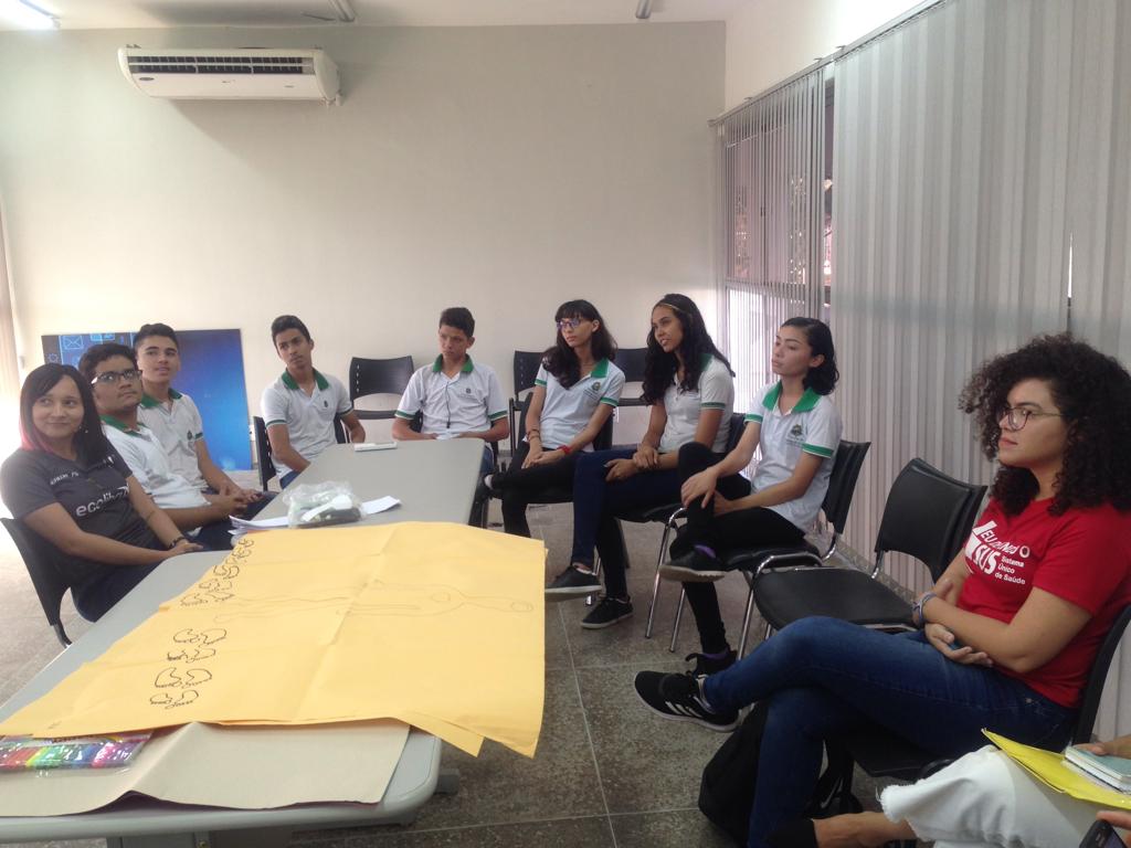 Em Horizonte o projeto já existe desde 2018. No dia 06/06/2019 (fotos abaixo) recebemos a visita do consultor da COMEA/Futura, empresa responsável pela avaliação do Projeto Maleta Juventudes, ligada ao Canal Futura, responsável pela entrevista e pela mediação de um grupo focal. No encontro foram feitas avaliações, discussões e troca de experiências entre os participantes das oficinas de 2018 e profissionais da saúde (Residentes da Escola de Saúde Pública do Estado do Ceará), coordenação do Centro de Artes e Esportes Unificados – CEU e o Instituto de Arte e Cultura de Horizonte – IACH.