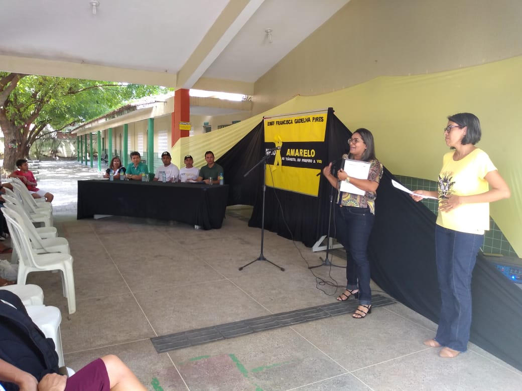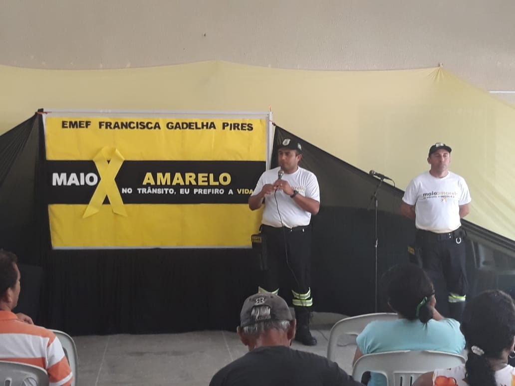 Agentes de Trânsito do Departamento Municipal de Trânsito e Transporte (Demutran) participam de palestra sobre segurança no trânsito na EMEF Francisca Gadelha Pires. A Atividade articulada pela direção da escola reuniu representantes do poder legislativo do município como os vereadores Luciano Pinheiro e Chelo Rocha e representantes do DNIT, juntamente com pais e alunos. O objetivo do encontro foi tratar de melhorias na segurança no trânsito do entorno da escola e também abordar sobre o mês de conscientização e alerta para as mortes e acidentes no trânsito no Brasil. No encontro, os agentes de trânsito do Demutran passaram orientações sobre normas de circulação e conduta e dados estatísticos do trânsito do município.