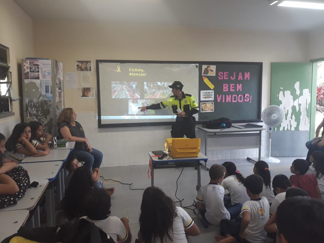 Agentes de trânsito do Departamento Municipal de Trânsito e Transporte de Horizonte (Demutran) realizaram palestras sobre o tema segurança no trânsito para crianças e adolescentes do ensino fundamental. As atividades fazem parte das ações alusivas ao Maio Amarelo, mês de alerta e conscientização do trânsito. O tema do movimento este ano é "no trânsito, o sentido é vida". As escolas visitadas foram EMEF Joaquim Antônio da Silva, na comunidade de Catu e a EMEF Geovania Albano de Almeida na comunidade de Coqueiros.