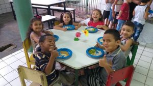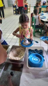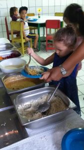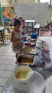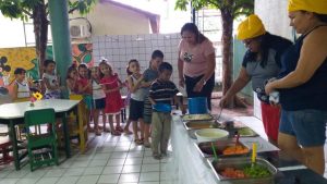 Os pequenos do CEI Maria Irene Amora aprendem desde cedo sobre a importância de uma refeição saudável. Verduras e frutas presentes no self-service para os alunos conhecerem novos sabores, um incentivo para que façam boas escolhas nutricionais. A ação foi um sucesso.