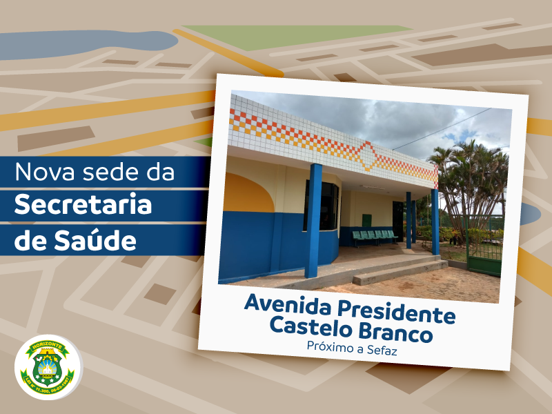 A Secretaria Municipal de Saúde de Horizonte está funcionando em novo endereço: Avenida Presidente Castelo Branco, próximo a Sefaz.Uma nova estrutura para melhorar a qualidade do atendimento à população.