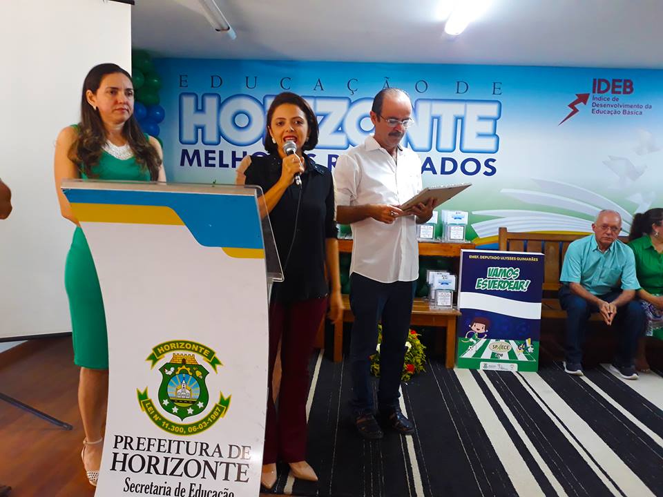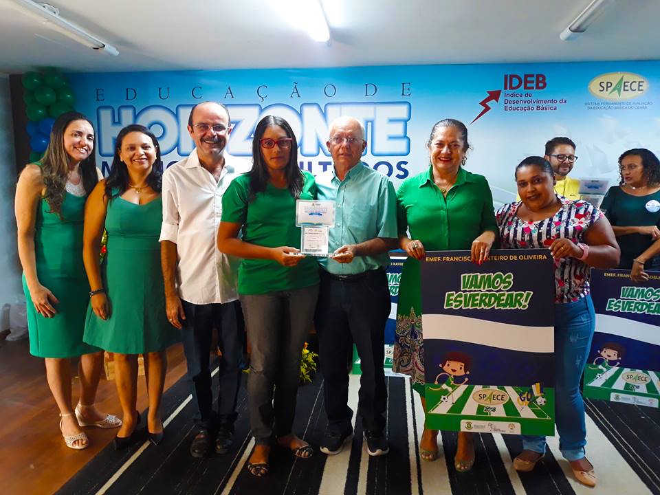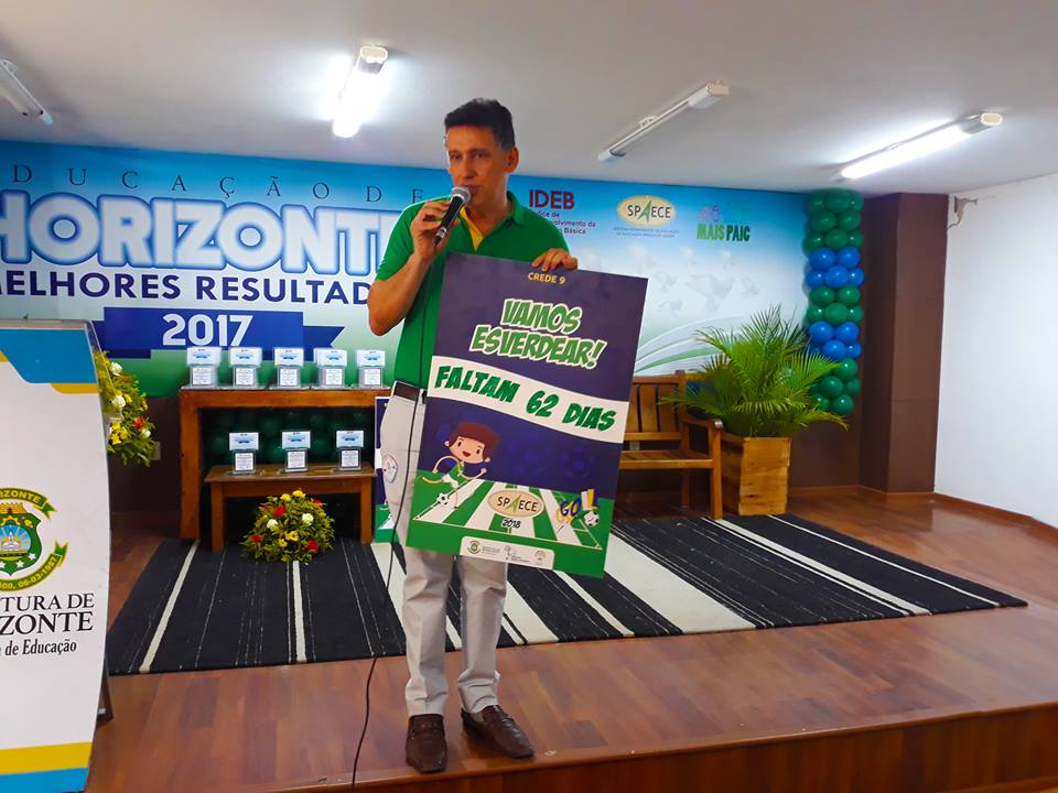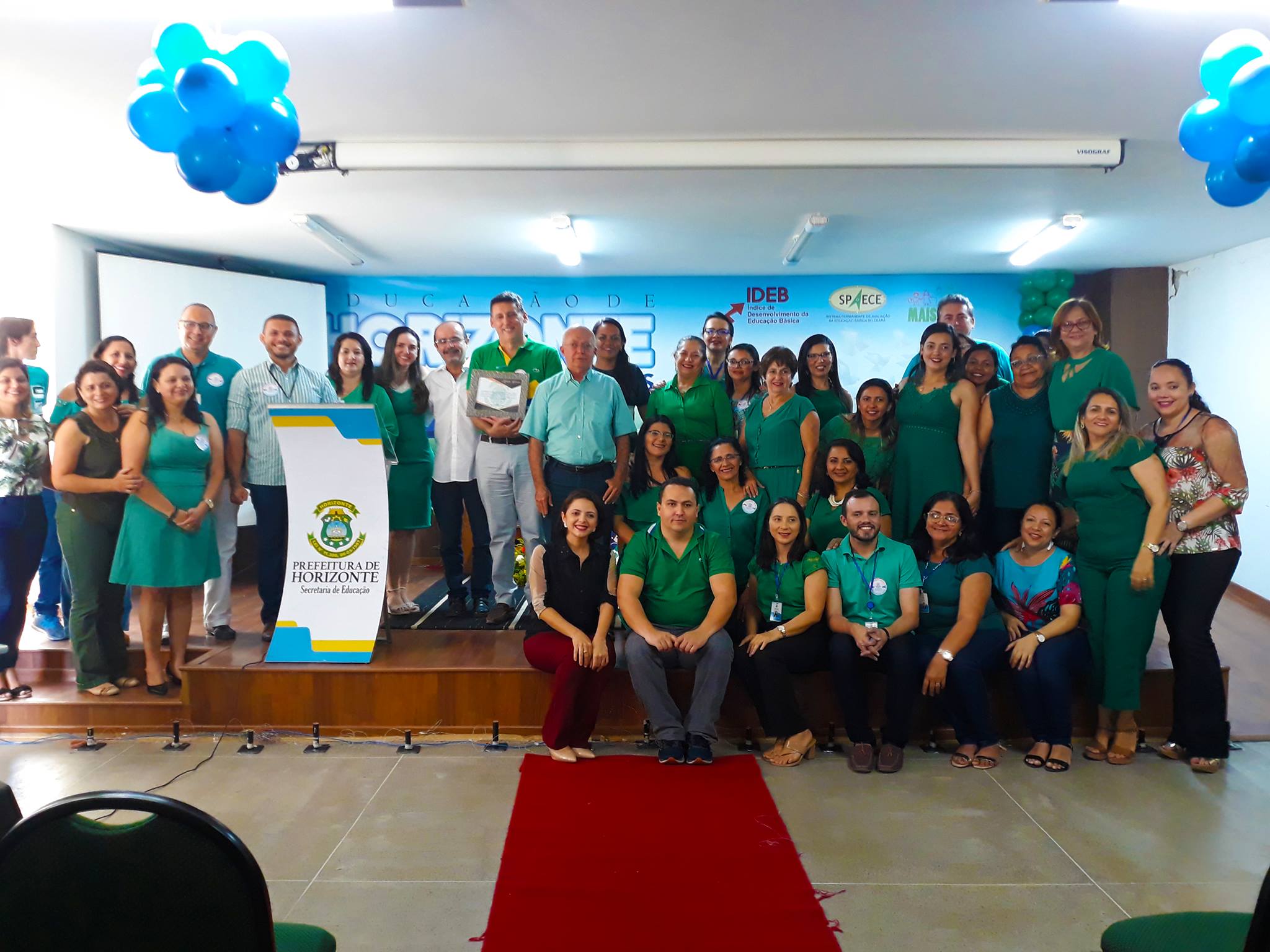 A Prefeitura de Horizonte, por meio da Secretaria de Educação, realizou um evento para premiar as escolas municipais com melhores desempenhos no Spaece e no IDEB 2017. O evento fez parte do calendário de eventos mensais da Secretaria de Educação em que reúne diretores de escolas, coordenadores e professores para capacitação e desenvolvimento de uma melhoria contínua na educação do município. Este mês o encontro contou com a premiação e teve como temática "A gestão e os resultados de aprendizagem no contexto da qualidade da educação de Horizonte". A ocasião contou também com uma palestra da professora Lucidalva Barcelar com o tema "O papel da gestão na promoção da aprendizagem dos estudantes".