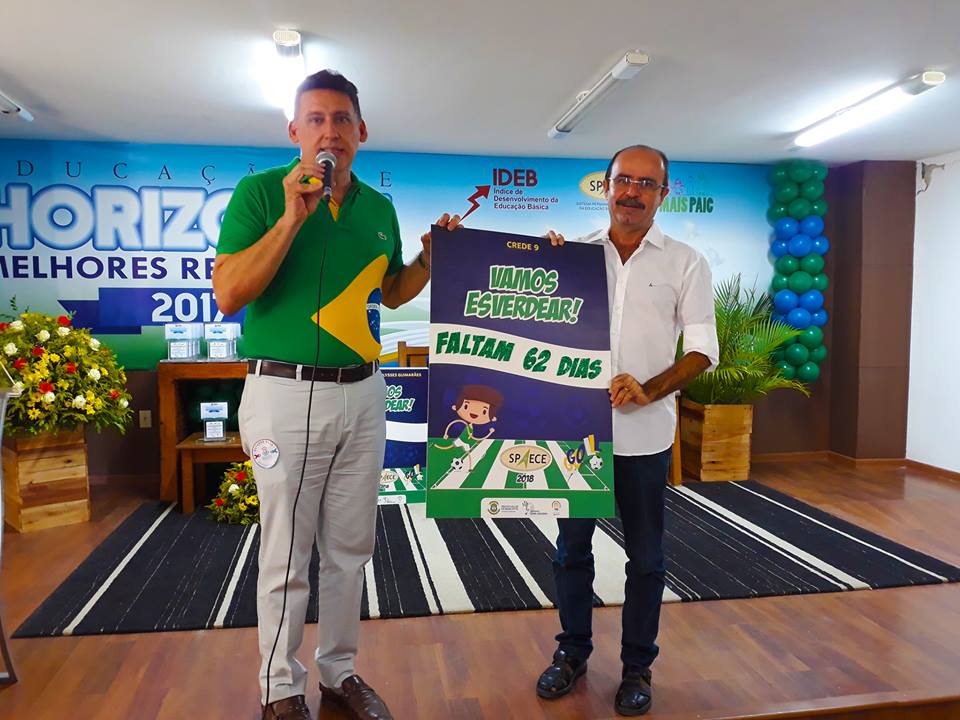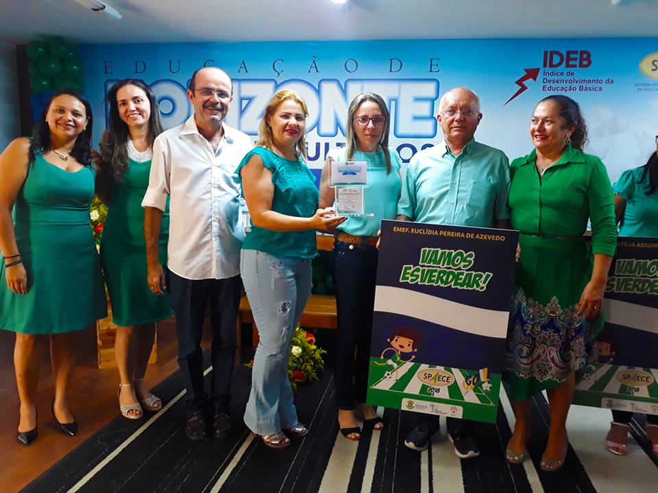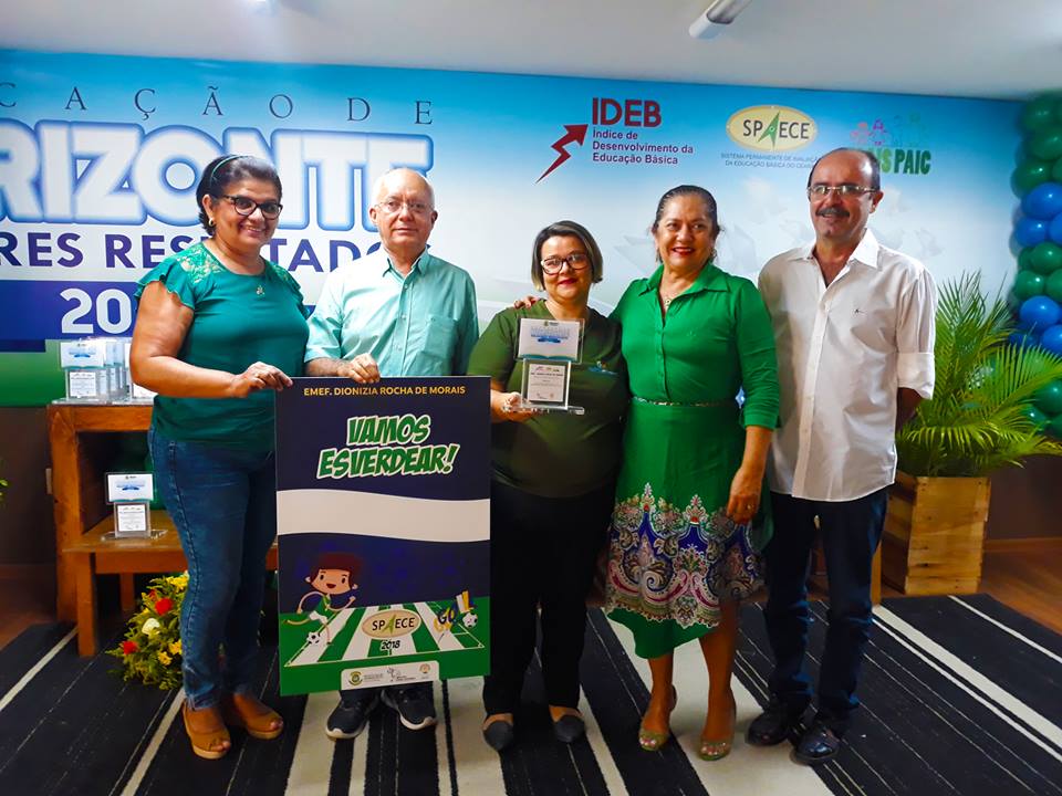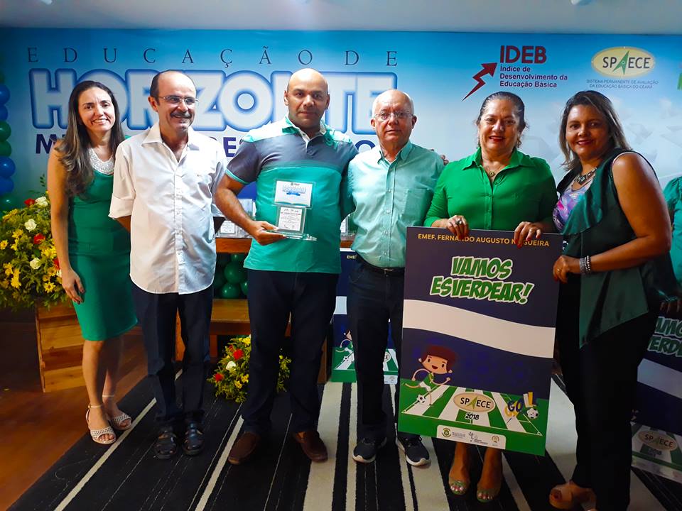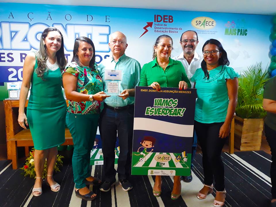 A Prefeitura de Horizonte, por meio da Secretaria de Educação, realizou um evento para premiar as escolas municipais com melhores desempenhos no Spaece e no IDEB 2017. O evento fez parte do calendário de eventos mensais da Secretaria de Educação em que reúne diretores de escolas, coordenadores e professores para capacitação e desenvolvimento de uma melhoria contínua na educação do município. Este mês o encontro contou com a premiação e teve como temática "A gestão e os resultados de aprendizagem no contexto da qualidade da educação de Horizonte". A ocasião contou também com uma palestra da professora Lucidalva Barcelar com o tema "O papel da gestão na promoção da aprendizagem dos estudantes".