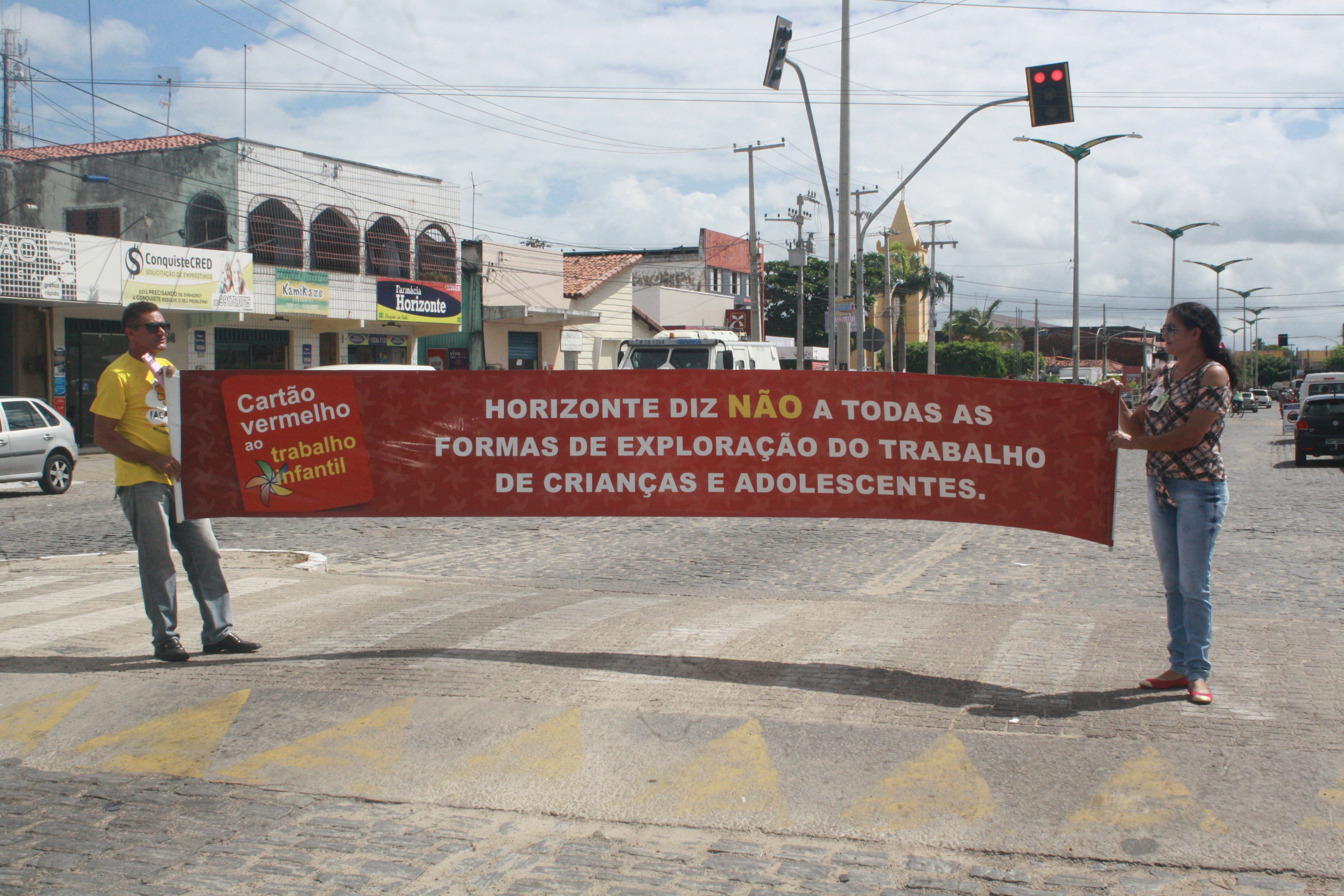 Doze de junho é o Dia Mundial de Combate ao Trabalho Infantil e a Prefeitura de Horizonte está empenhada em conscientizar a população sobre os prejuízos desse tipo de prática. Como forma de alerta, profissionais da Secretaria de Assistência Social e Trabalho, Conselho Tutelar e Secretaria de Educação Educação realizaram panfletagem nas ruas do centro da cidade e em escolas municipais.